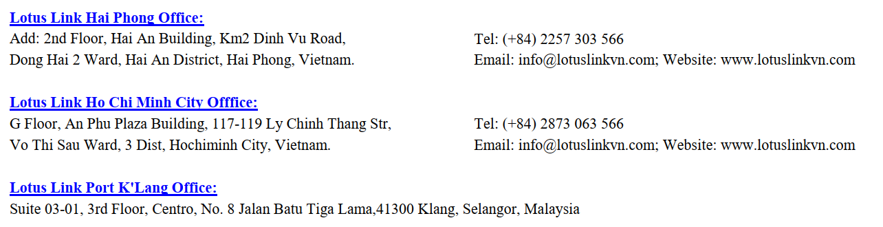 Information of International container vessel's schedule